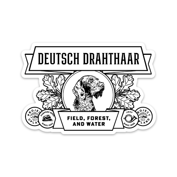 The Deutsch Drahthaar is an icon among German dog breeds, and its legacy continues in the United States today. This premium weatherproof sticker design is a homage to the versatility of these bearded hunting dogs. Please email info@projectupland.com if you want us to make your dog breed next!
