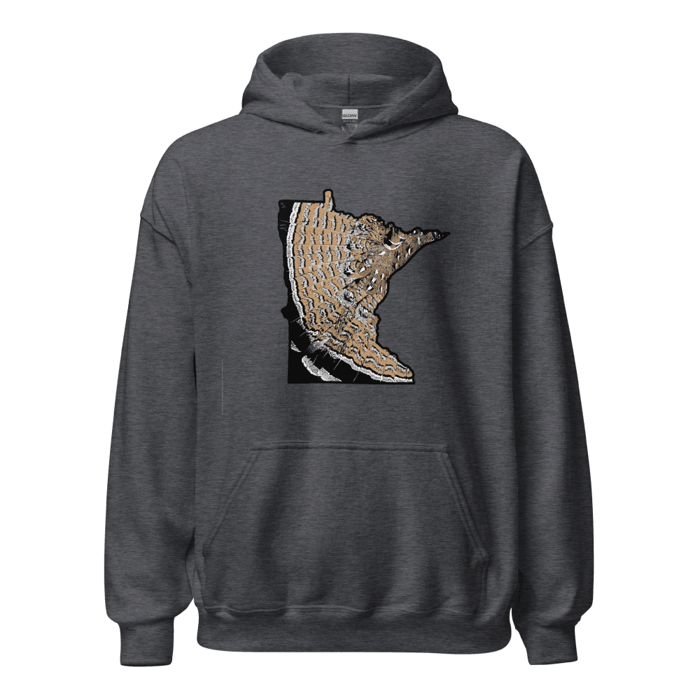 Minnesota is one of the most iconic states for Ruffed Grouse hunting. This new hoodie design are for those that have found adventure in the covers of this stronghold of grouse county. This hooded sweatshirt edition features a split color phase grouse fan inside the state of Minnesota on a Heavy Metal Grey.