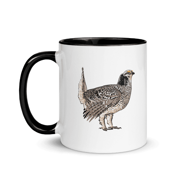 Start daydreaming early while drinking your morning coffee from this 11 oz ceramic mug featuring the sharp-tailed grouse, an icon of the American shortgrass prairies. This design features a male sharptail standing proudly. This high-quality mug is both dishwasher and microwave safe.