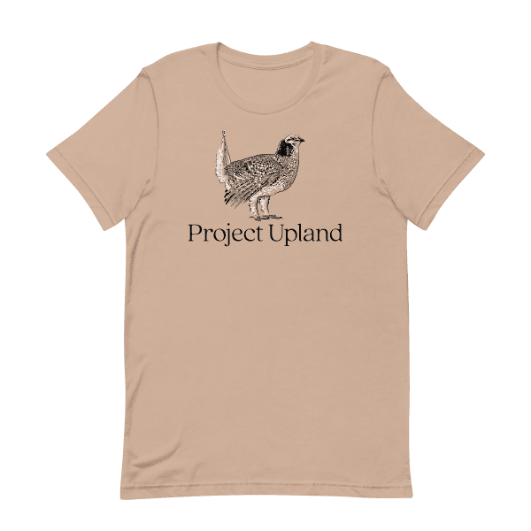 The sharp-tailed grouse is an icon of the American shortgrass prairies. This new classic shirt design showcases the details of a male sharptail standing proudly. Please email info@projectupland.com if you want us to make your favorite game bird species next!