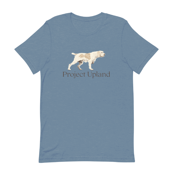 The Spinone Italiano is an ancient Italian pointing breed that continues its legacy today. This classic logo design shirt highlights the breed’s distinct characteristics. Please email info@projectupland.com if you want us to make your favorite dog breed next!