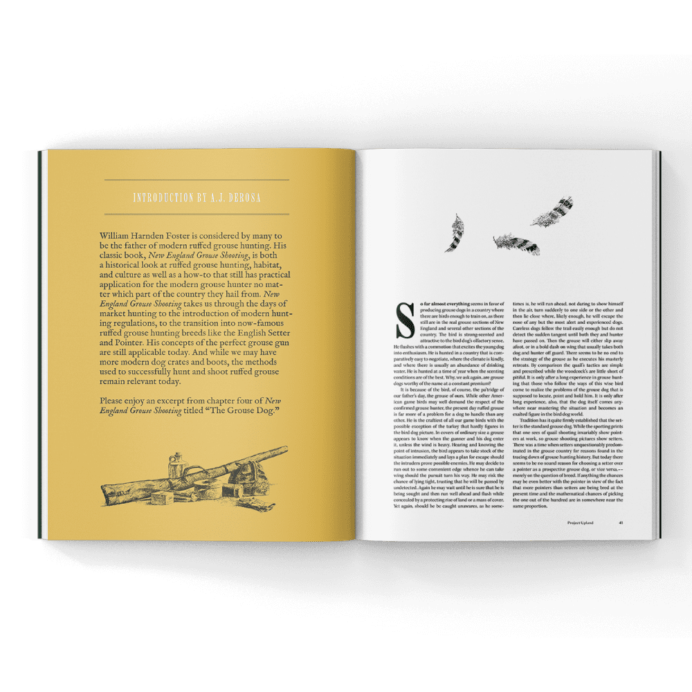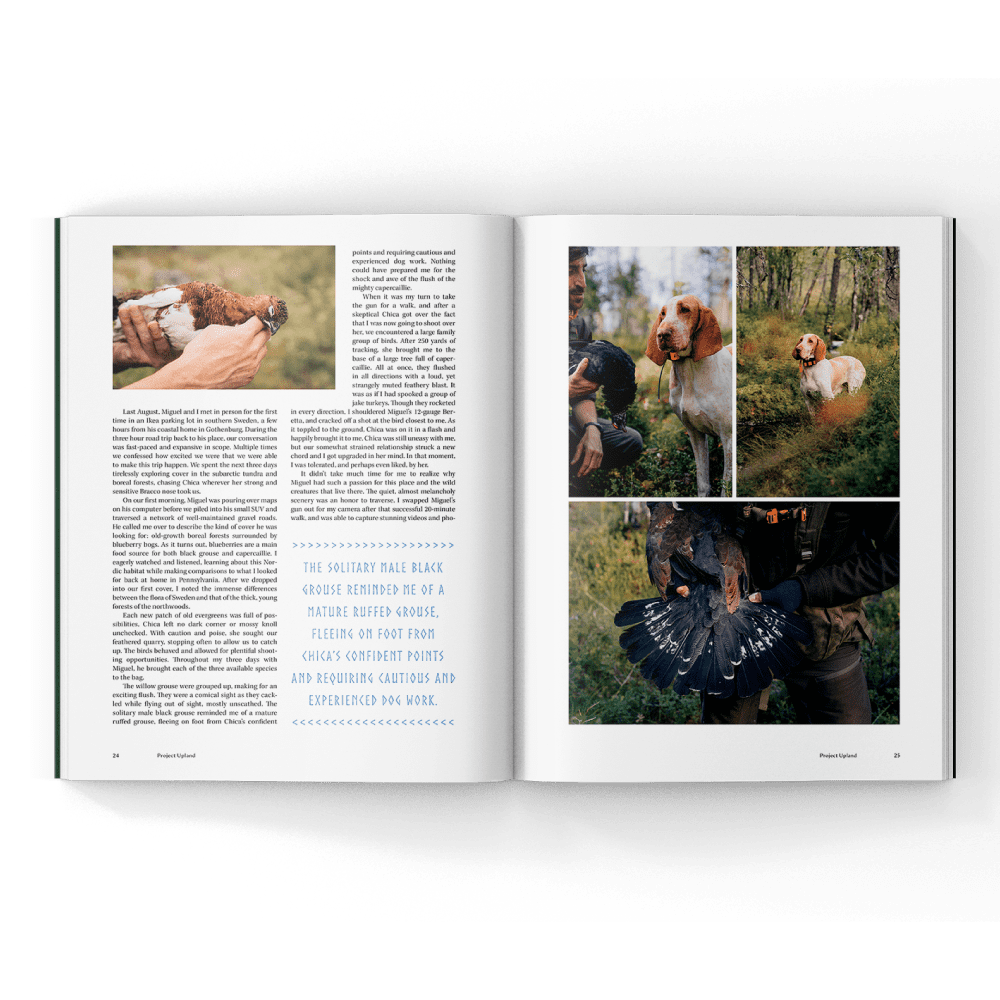 Volume Five, Issue One of Project Upland Magazine features a cover image from the film and cover story Lapland Grouse. This issue explores some of the latest conservation issues, research, and legislation. From Sweden to North America it explores shotguns, the world of bird dogs, and a delicious run of wild bird recipes. It also includes the iconic author William Harnden Foster and his celebrated artwork.