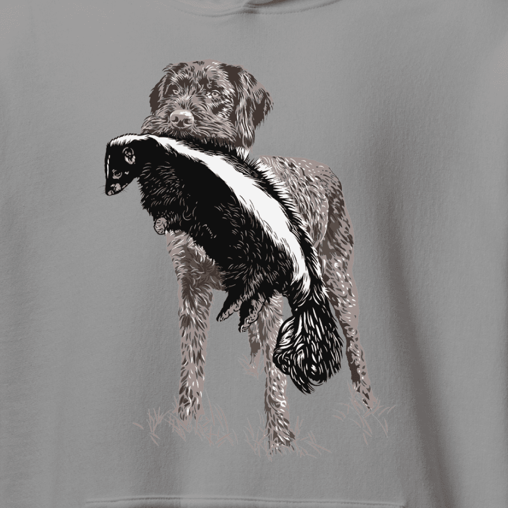 For all those wirehair lovers out there that are proud of true versatility we give you our latest hunting dog hoodie deign.